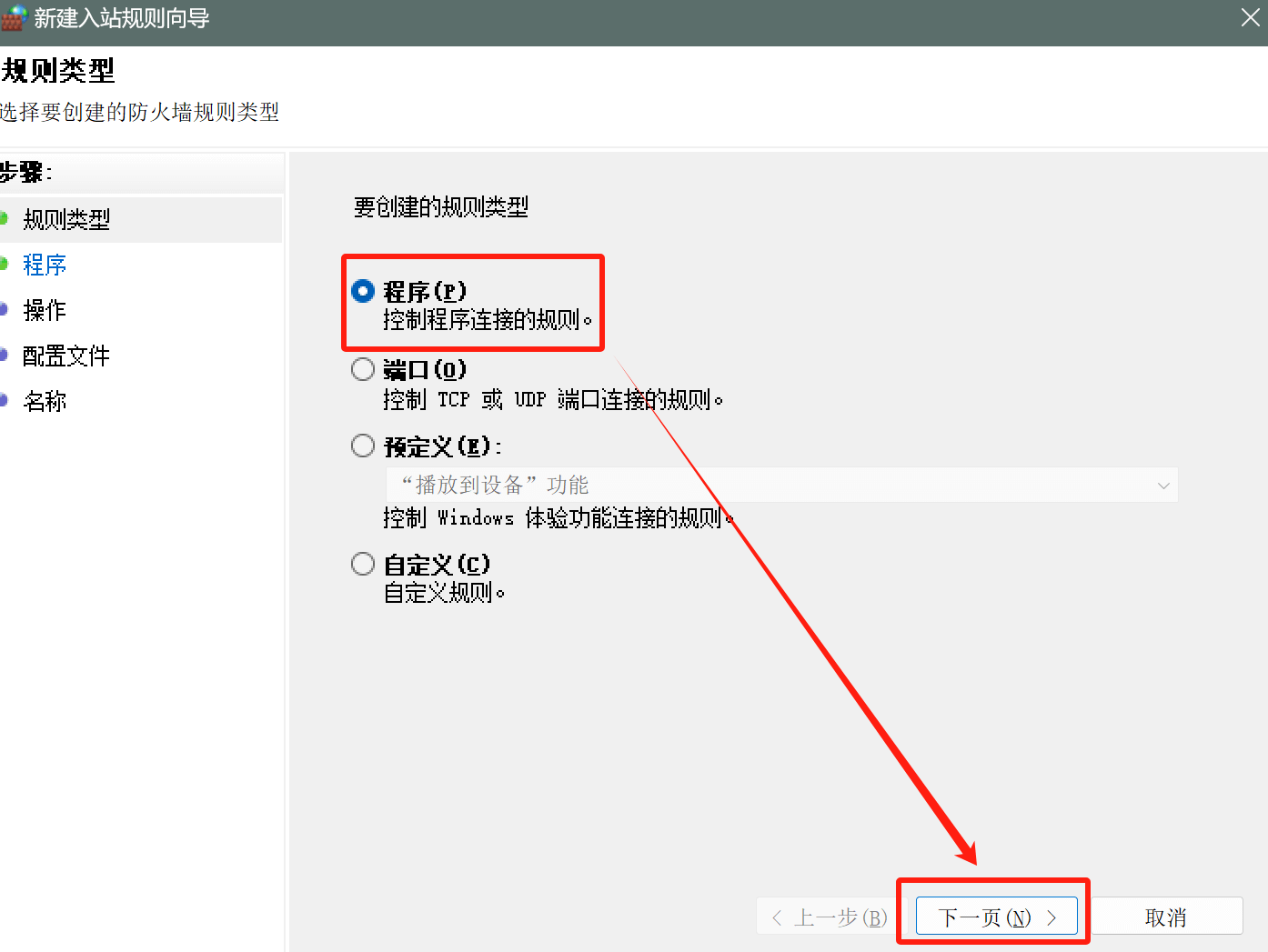 - 选择程序,点击 下一页