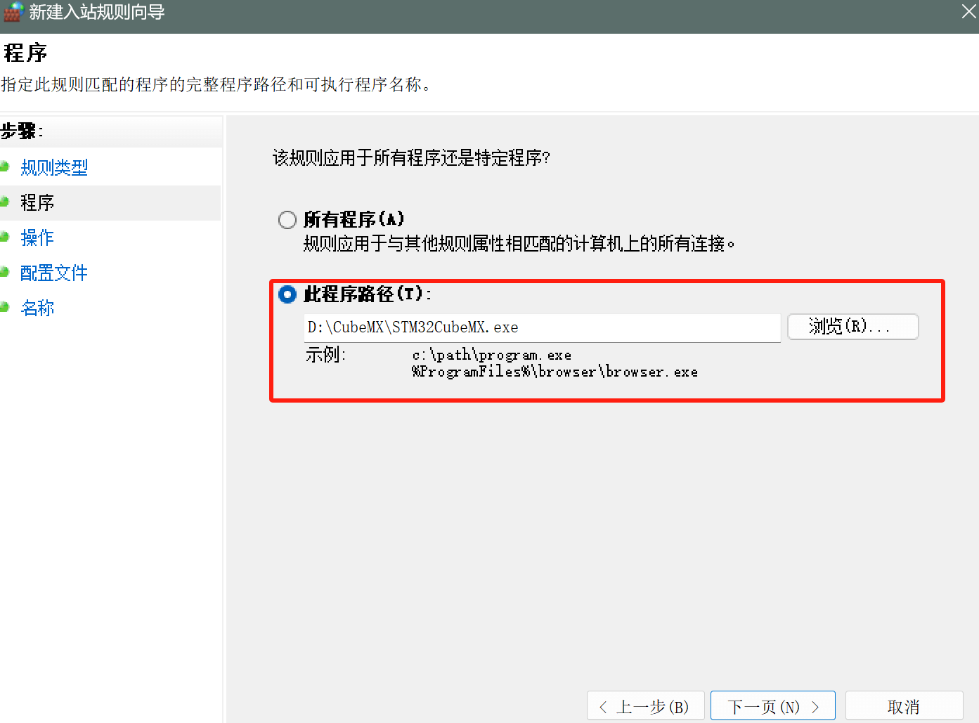- 在这个页面选择STM32CubeMX.exe的路径,完成后点击下一页