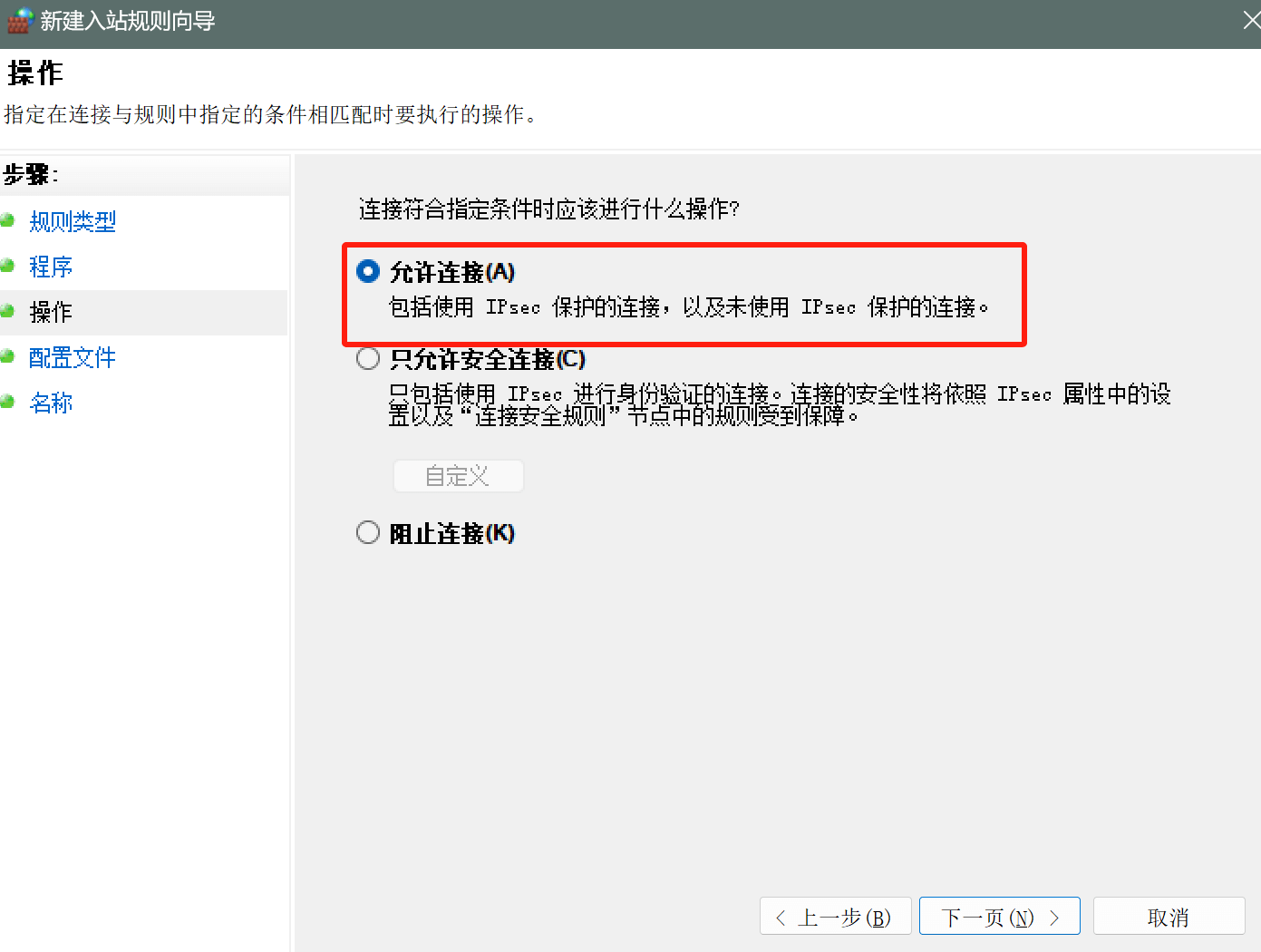 - 选择入站规则